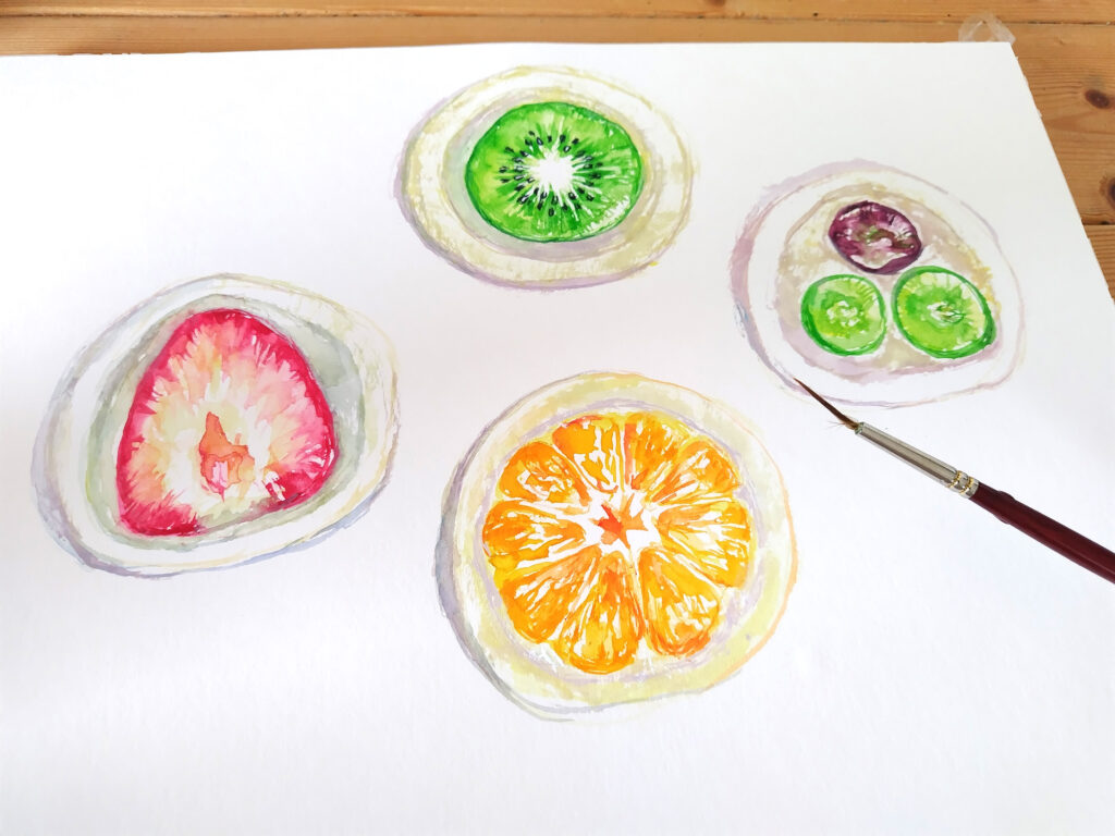 2025-09-21 / 最終更新日時 : 2025-09-21 yoko-obata 水彩イラスト フルーツ大福の水彩イラスト フルーツ大福大好きです🥰 白の紙の上に白いものを描くのは難しいですね💦 影を表現するとき、白の絵の具に黒を混ぜるのではなく 白に青や黄色など様々な色を出してちょうどよいグレーになるように作っています🖌️ 250919104015965